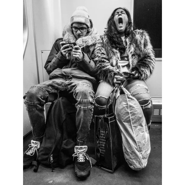 In the Rotterdam Metro (subway) travellers all have their own thoughts and most of them are completely in their own world. Even when travelling together they form a closed group from the rest of the train.