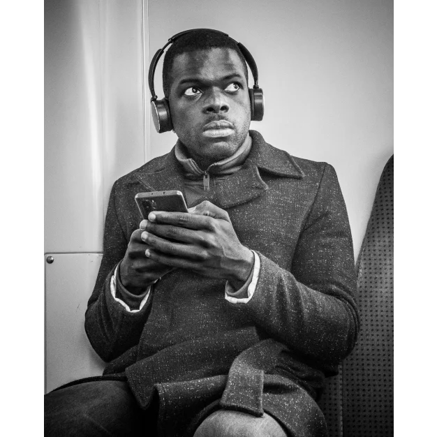 With these portraits I like to show the contrast between the crowded train and the individuality of their worlds.