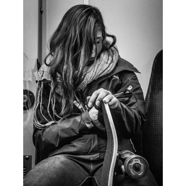 With these portraits I like to show the contrast between the crowded train and the individuality of their worlds.