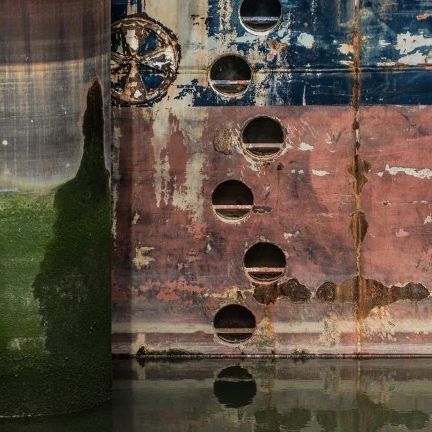 Stairs on the side of an industrial object in the port of Rotterdam. Part of my series 'Stairs'
